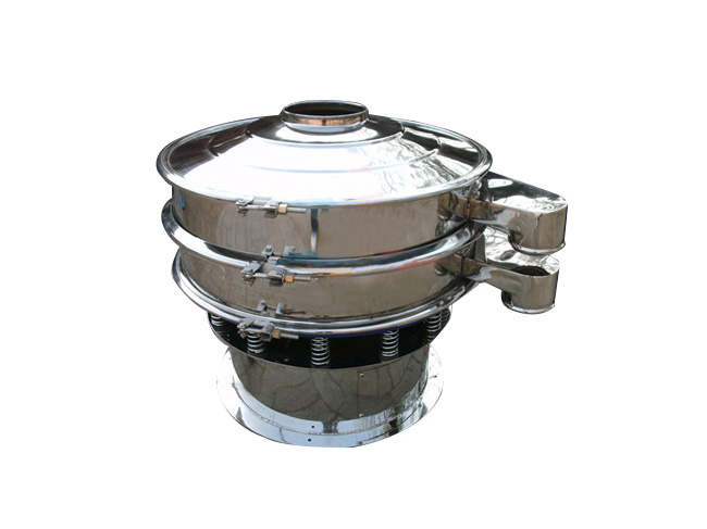 旋振篩(圓形振動篩)由立式振動電機作激振源,因為其上下端重錘安裝在發動軸兩側,使電機的旋轉運動轉變為垂直、水平、傾斜的三次元運動。  旋振篩產品特點:  設計精巧,耐用,適合任何粉類以及粘性液體的篩分。  操作簡單,換網方便,易于清洗?! 『Y網無阻塞,粉末無飛揚?! ‰s質以及粗料自動排出,并且可以與給料設備、輸送設備配套使用,處理量大,生產效率高?! 〕叽缧?,節省空間,易于移動?! ∫子陴B護,可單層或多層使用?! 『Y網設計合理耐用,換網只需3-5分鐘?! 『Y網可達5層,篩分出6種不同顆粒大小的物料